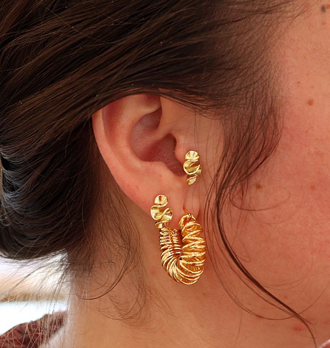 De SELIA oorbellen van Mabiënte hebben een zacht, golvend dynamisch design. Kleine oorbellen; subtiel, met opvallend accent. Perfect voor wie houdt van minimalistische luxe met een twist.