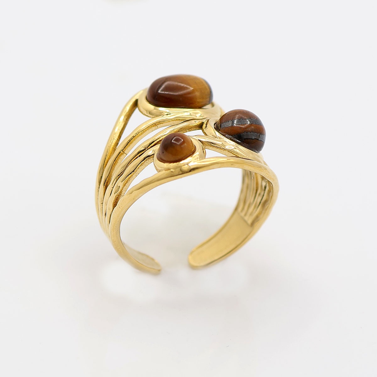 De RINA ring straalt natuurlijke luxe uit. De ring is gemaakt van hoogwaardig roestvrij staal met PVD-coating, wat zorgt voor een duurzame glans en langdurige kleurvastheid. De maat is verstelbaar (standaard ringmaat 17,5), zodat ze comfortabel past aan jouw hand.