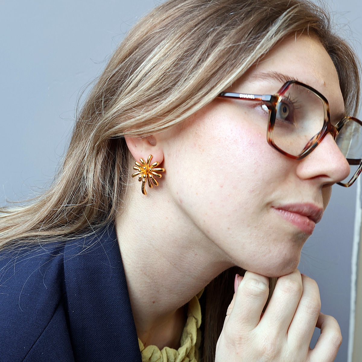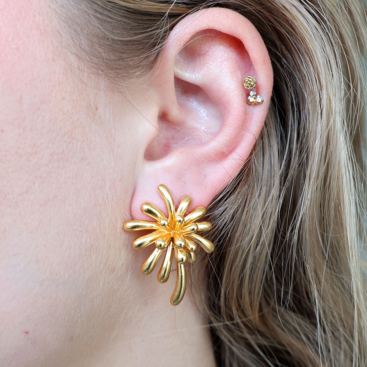 Vergulde messing oorbellen met een speels vuurwerk design.